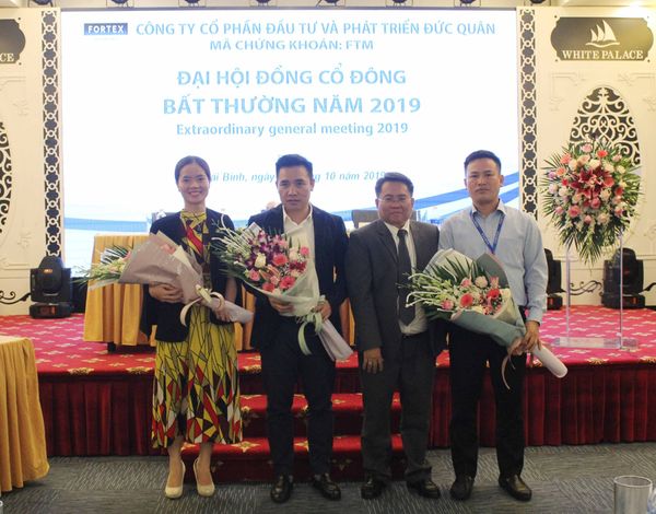 Công ty Cổ phần Đầu tư và Phát triển Đức Quân (Fortex, Mã CK: FTM) đã tổ chức Đại hội đồng cổ đông bất thường (Đại hội) tại Hội trường tầng 1 Khách sạn White Palace (số 245B đường Trần Thái Tông, phường Tiền Phong, thành phố Thái Bình, tỉnh Thái Bình) vào lúc 14h400 ngày 29 tháng 10 năm 2019.